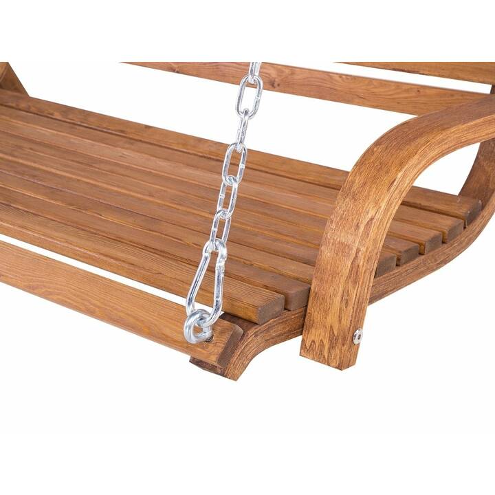 Une balancelle sera l’élément idéal pour votre coin jardin ! Cette balancelle solide en forme courbée, avec une structure en bois de mélèze, est résistante aux intempéries. L’assise et le dossier sont constitués de lattes transversales stables. Des tablettes sont présentes sur les deux côtés, afin de poser un livre ou une boisson. La forme incurvée de la structure jusqu’à sa base permet à la balancelle d’être stable et antidérapante. Les chaînes et les mousquetons sont en acier massif, donc aucun risque de vous retrouvez au sol. Construisez votre petit coin de jardin