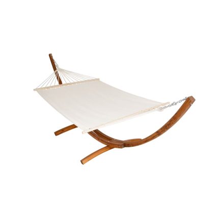 • Hamac avec Support en Bois de Mélèze Naturel – 1 Place, Structure Courbée – Coton et Polyester – Pour Jardin, Terrasse et ExtérieurDimensions : 122 cm x 415 cm x 124 cm (H x L x P)- Matériel : Bois de mélèze - Coton- Charge maximale : 150 kg