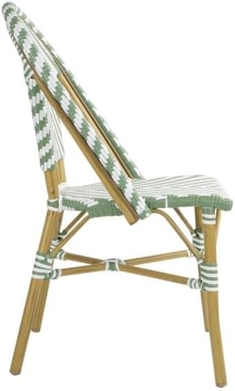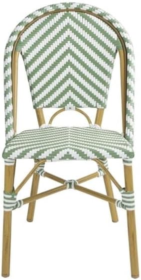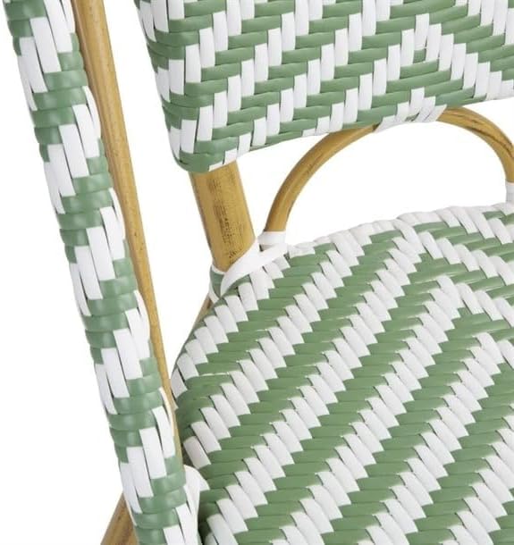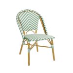 CHAISE BISTROT CROSS Style Parisien en Rotin – Vert Clair & Blanc – Aluminium & Rotin Synthétique – Empilable, Déjà Montée – Utilisation Intérieure & Extérieure
