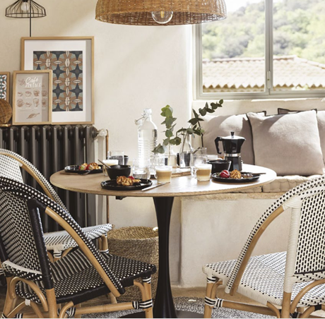 Avec son cadre en aluminium effet bois et son assise en rotin synthétique tressé, cette chaise allie solidité et style classique parisien.